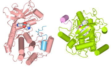 PKAと阻害剤H7複合体 (1YDR)(左)とスタウロスポリン複合体 (1STC)(右)